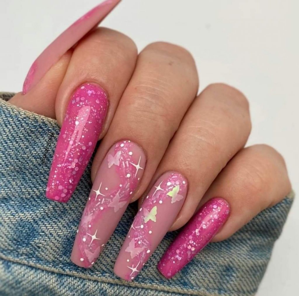 π There are many types of glitter nail polishes. From tiny and delicate glitter to those who really make a statement. You can combine some of them in a manicure.